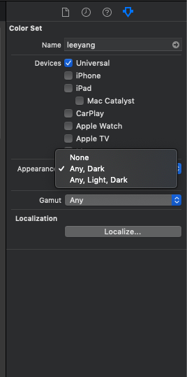 dark일 때 사용할 color와 light일 때 사용할 color를 custom해서 만들면 됩니다.