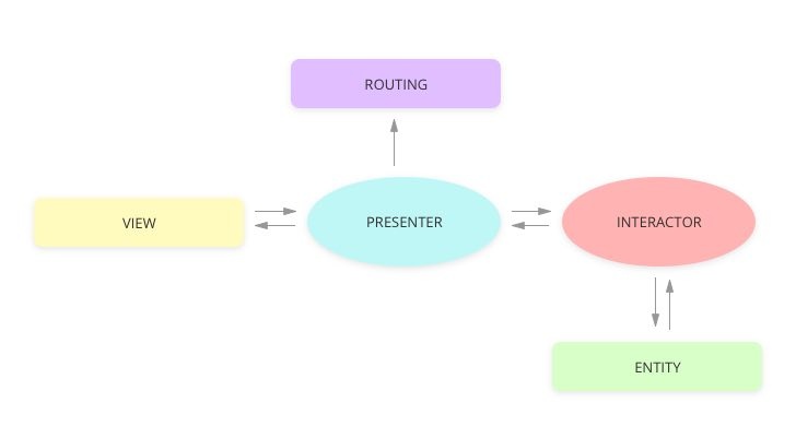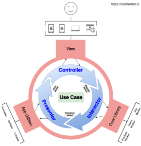 VIPER와 다르게 액션에 대한 비즈니스 로직을 Presenter를 통하지 않고 Interactor를 요청하여 변화를 주어 단방향으로 플로우가 진행된다.